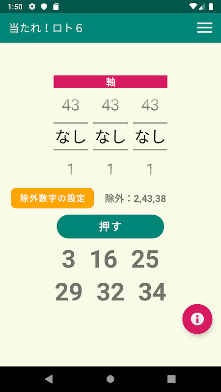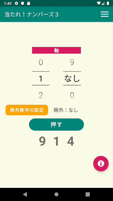 ・出た数字が気に入らない場合は、再度「押す」ボタンにタッチすれば、別の数字を表示します。