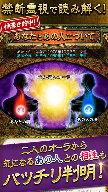 ※本アプリのダウンロードは無料です。有料鑑定メニューはアプリ内課金にてご用意しております。(有料鑑定メニューは購入する度に課金が発生します)