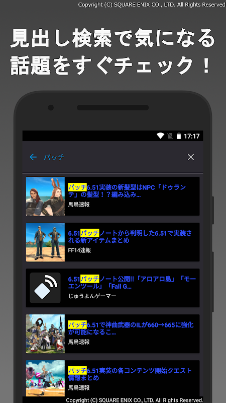 ファイナルファンタジー14(FF14)を扱った様々な情報やブログの見出し記事を集めた非公式まとめアプリです。