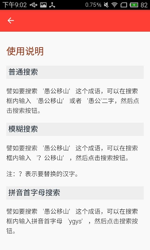 譬如要搜索 '愚公移山' 这个成语,可以在搜索框内输入 '?公移山' ,然后点击搜索按钮。