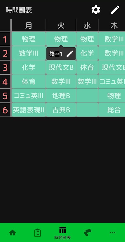 時間割表もついています。ただの時間割表ではなく、出かける時間などを設定しておけば毎日その時間にその日の時間割を通知してくれます。
