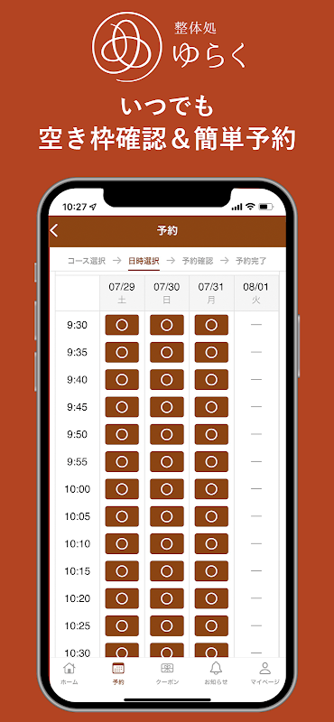 いつでもお手元のスマートフォンからご希望のお時間帯のチェック・ご予約が可能です。