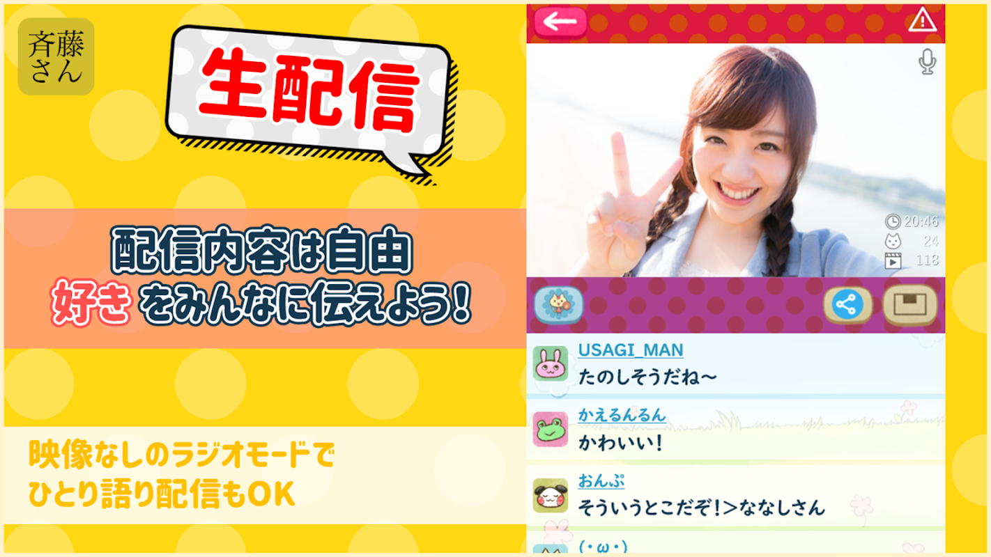 \ 3,300万ユーザー突破! /気軽に、無料で、だれとでも。斉藤さんは電話や中継、カラオケも楽しめるエンタメ型トークアプリです!