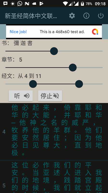 シンプルで直感的なユーザーインターフェイスを使用して、聖書のさまざまな本を聞いて読んでください。このアプリは、Text to Speech(TTS)と呼ばれるGoogleテクノロジーを使用します。この場合、聖書をリアルタイムで読み取ります。これにより、モバイルデバイスのストレージ領域の消費が削減されます。このアプリはインターネット接続を必要としないため、アクティブな接続なしでスクリプトを楽しむことができます。