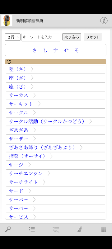 ・グループ辞典の検索結果リストは、メンバーの辞典ごとに頭出しジャンプが可能です。