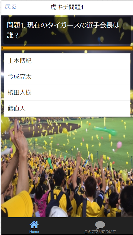 ご存知虎キチのためのファン検定クイズアプリです。最低知っておかなければ虎キチを豪語できない問題ばかりを集めました。ガチでチャレンジしてください。