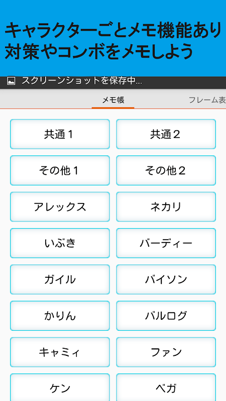 キャラクターごとにメモ帳機能があります。コンボや対策等をメモしてください。