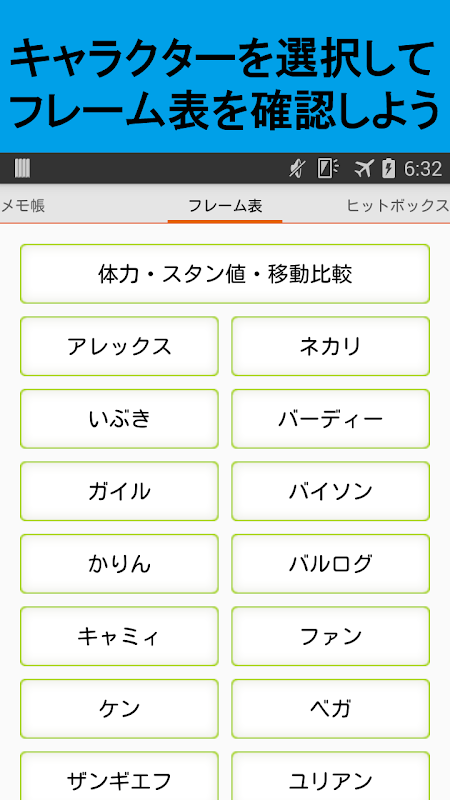 日本語版のストリートファイター5(スト5、ストⅤ)フレーム表アプリです。各キャラのフレーム表及びヒットボックスが見られます。キャラごとメモ帳機能もあります。