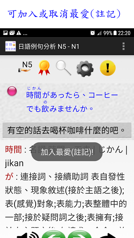 2.已加入查詢,並可將喜歡的句子加入最愛(註記).