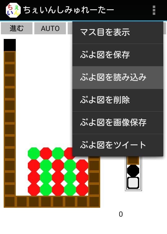 ぷよを任意に配置した後、自動実行やステップ実行が行えます。