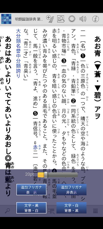 ・辞典項目のテキストは、文字サイズを細かく設定可能です。