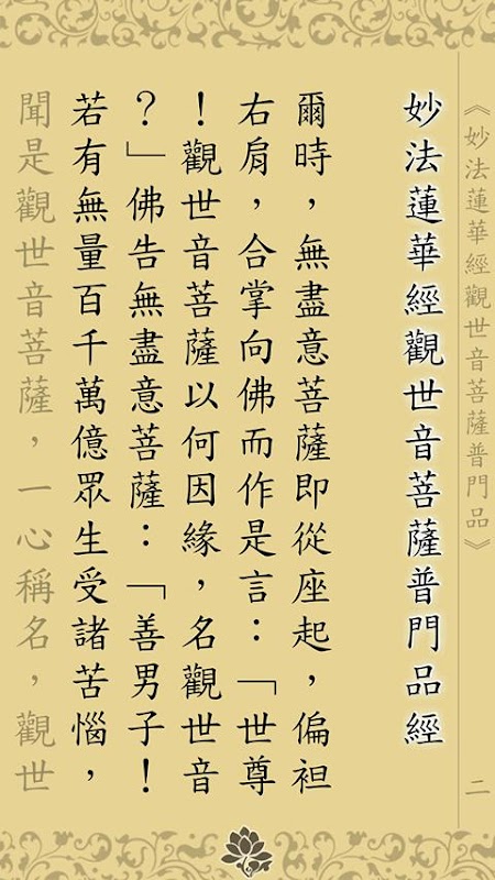 除了精緻的文字顯示,本程式提供了經咒念誦的功能,並且於每個章節經句章節細心的引導你,免除了紙本經本使用上,初發心的菩薩們常會遇到的問題,如跟不上、找不到等等的問題影響持誦的順暢。