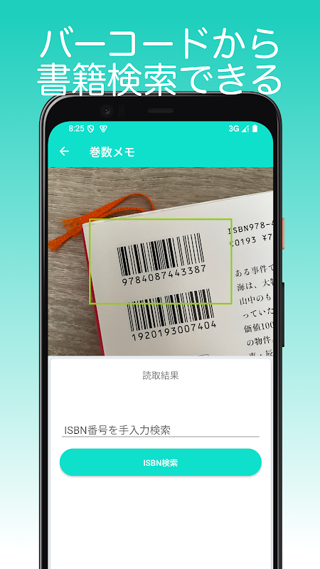 ・バーコードから書籍検索ができる