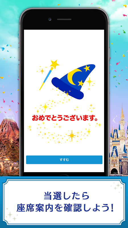 鑑賞に座席指定券が必要なエンターテイメントショーの抽選ができるアプリです。