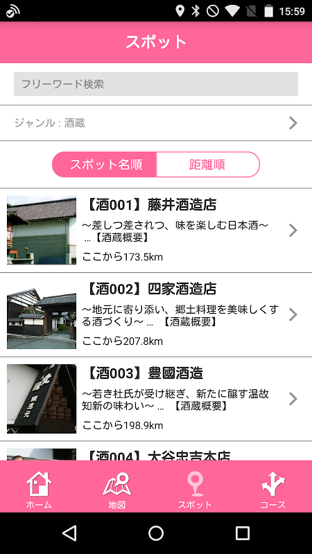 ◆桜の名所、酒蔵などのスポットを地図上に表示◆