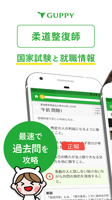 柔道整復師 国家試験&就職情報【グッピー】は、柔道整復師国家試験対策と就職活動が同時にできるアプリです。