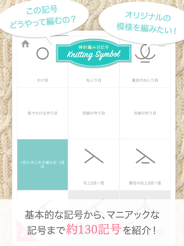 メンズアランセーターとレディース模様編みカーディガンの2作品を中心テーマに、編み図の見方、棒針編みの編み方、とじ方やはぎ方、仕上げ方などのポイントを、わかりやすく解説しています。編み図のサイズと実際に編みたいセーターのサイズは違うもの。サイズの合わせ方、きれいな袖付けや衿ぐり、模様編みのコツなど、ウエアを編む際によくある疑問を載せています。気に入ったセーターを見つけて編み始めたのに編み方の応用が利かないという方のためのお助けアプリです。