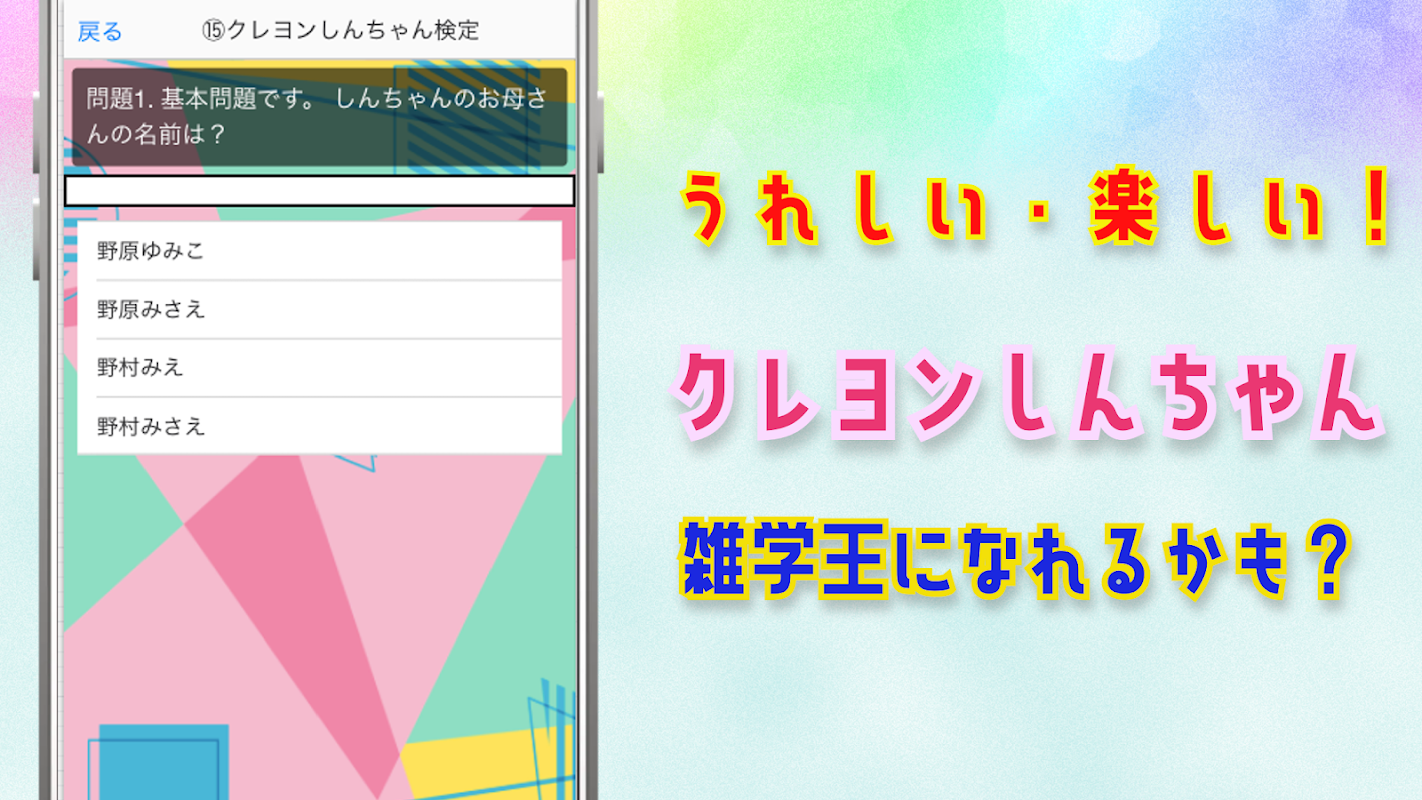 クレヨンしんちゃんのクイズアプリです。