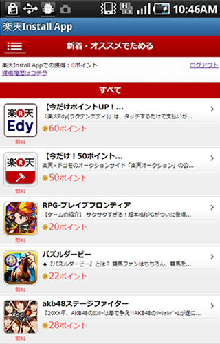 楽天 Install Appに掲載されるAndroidアプリは、会員登録や