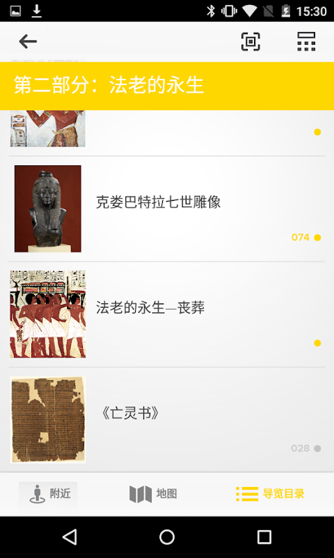 导览目录:包含每个部分所包含的文物清单,可以自行选择进入展品