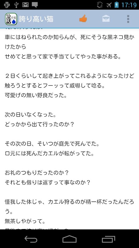 泣ける話を集めたアプリです。おかげさまで60万ダウンロード突破。