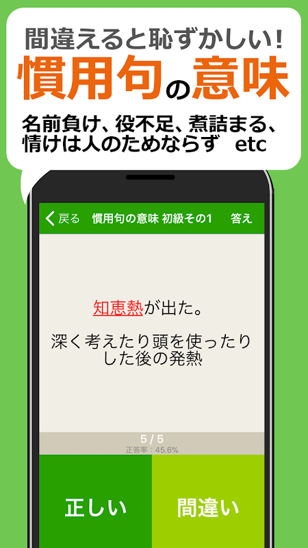 慣用句の意味や使い方、漢字の読み方を間違っていませんか? 間違いやすい問題を多数収録。このアプリで正しい日本語を身に付けよう!