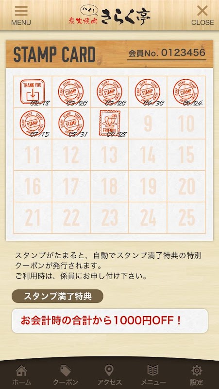 このアプリでは、きらく亭の色々な情報やアプリユーザー限定のお得なサービスが手に入ります!