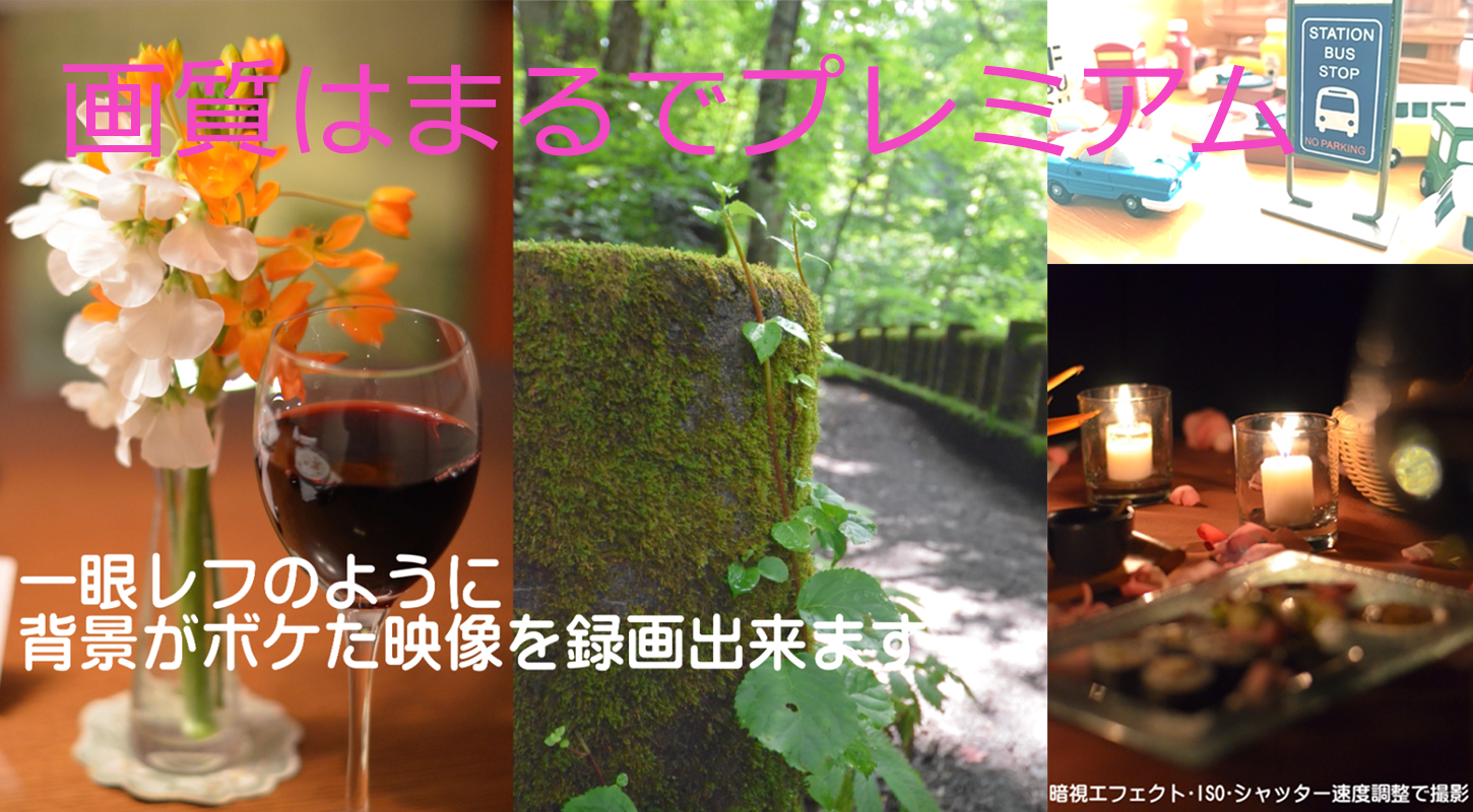 ⑨マニュアルフォーカスが使えますので背景をボカシた一眼レフのような動画が撮影出来ます。