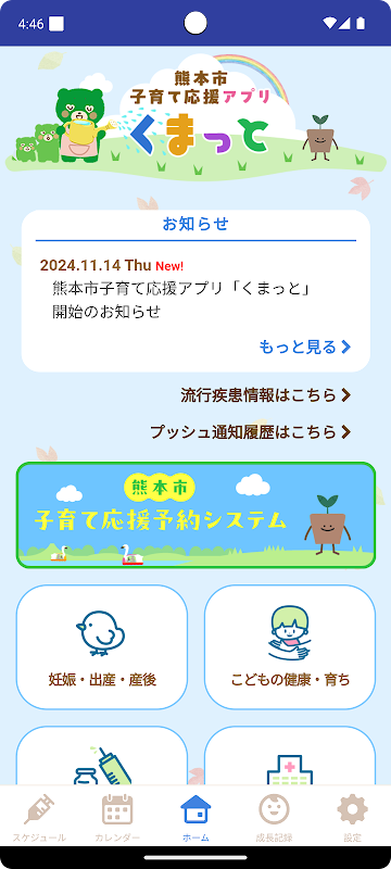 複雑な予防接種スケジュールを自動計算・修正してくれる予防接種スケジューラー機能、お子さんの成長が記録できる母子健康手帳機能、子育て情報の配信機能などがあります。