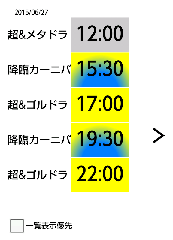 ・ボタン以外を押すと開催までのスタミナ回復量と降臨ゲリラの種類を表示