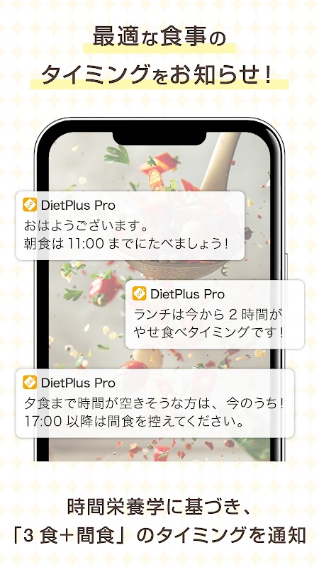 さらに、最適な食事のタイミングもお知らせするので、無理なく理想の食習慣を身につけられます。
