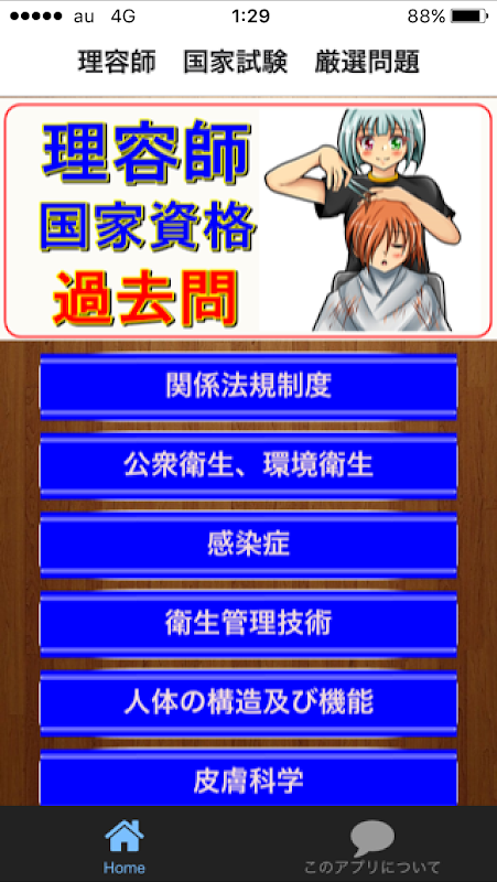 国家資格である理容師取得を目指すためのアプリです。 問題は、一問一答形式や複数問択一で、過去問題を厳選しました。 随時更新し問題を増やして行きます。