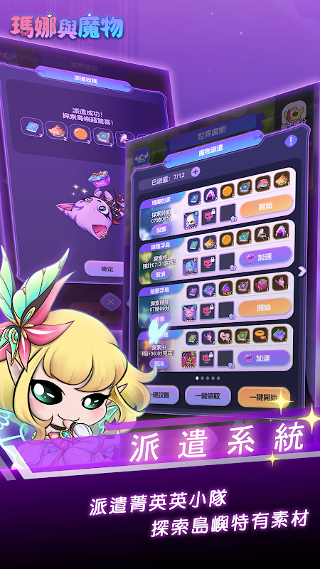 <派遣システム>:エリート部隊を派遣して島特有の素材を探索し、モンスター専用能力の育成に注力。