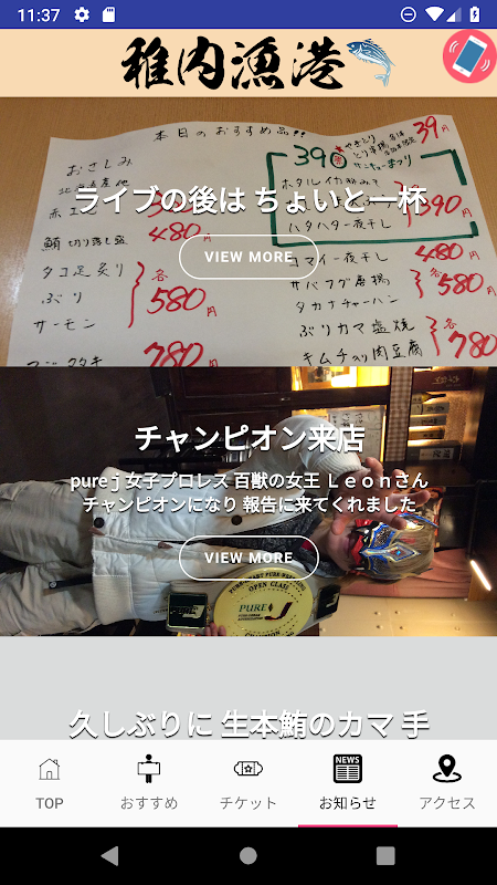 稚内漁港水道橋店アプリは、東京都千代田区三崎町にある居酒屋「稚内漁港水道橋店」の公式アプリです。