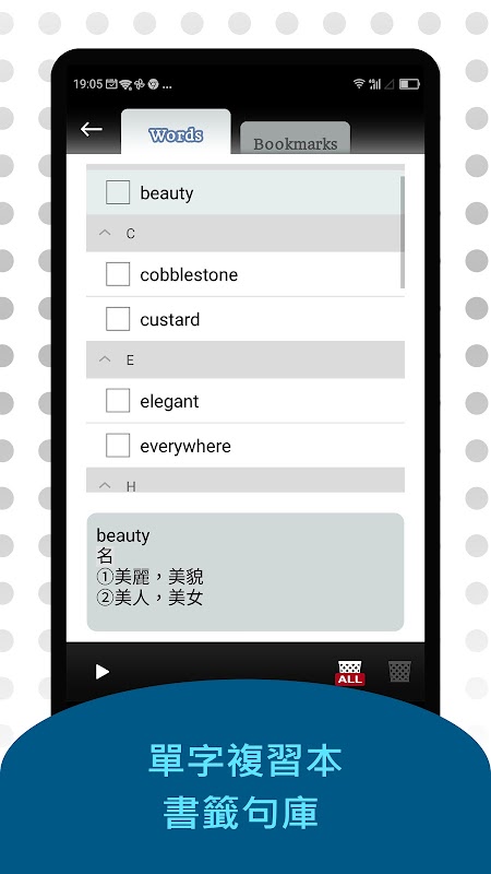 8. ブックマーク機能:復習や活用が必要なコンテンツをブックマークし、繰り返し再生して練習できます。