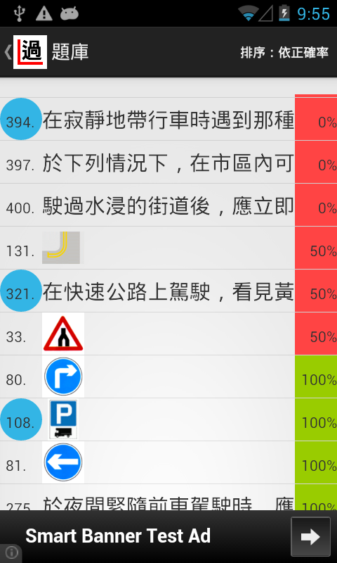 模擬練習原設有20題題目,跟官方考試一樣,亦可選擇50題或100題作密集式練習