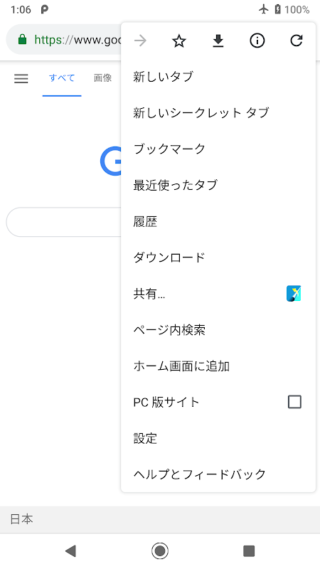 ウェブアクセスのショートカットについては、Chromeブラウザで現在閲覧しているサイトから「共有」メニューから設定することができます。