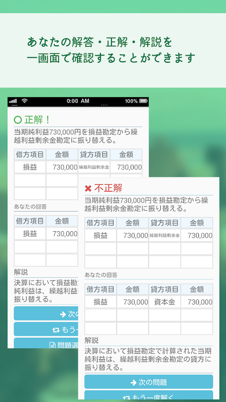 このアプリで仕訳問題を繰り返し解いて、簿記2級試験に合格出来る力を身につけましょう!
