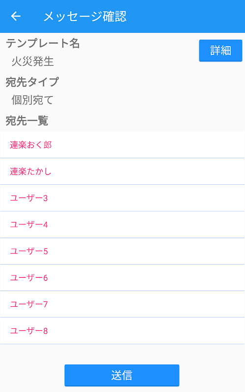 災害時、緊急時の安否確認や、通常時の連絡等メッセージを簡単に送信できます。