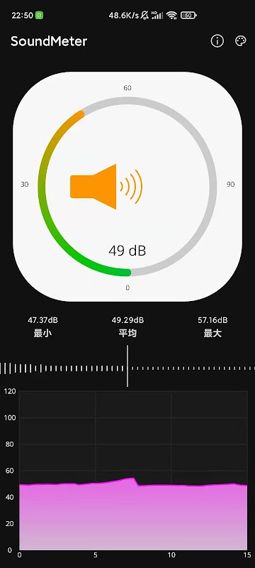 声级计应用程序通过测量环境噪声来显示分贝值,以各种形式显示测量的分贝值。通过这款智能音表应用,你可以体验整洁的高画幅平面设计。