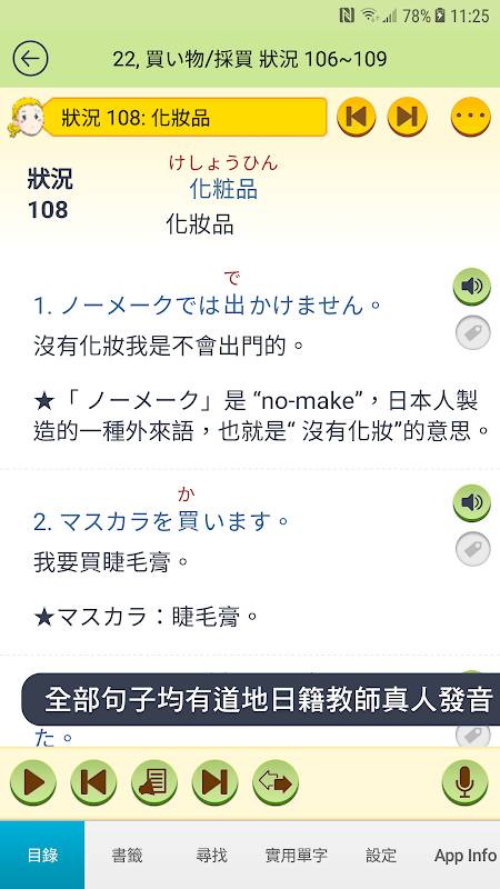 すべての文章は、日本語の教師の実際の発音を持っています、発音の速度は調整可能であり、練習は簡単です。