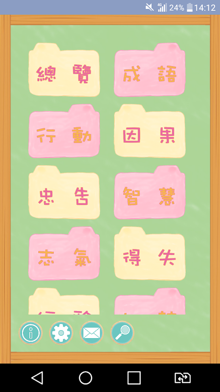 簡単な操作、14種類の分類語、対応する中国語の4文字のイディオム、中国語と英語の学習。英語を学ぶのに良いヘルパーであり、英語の作文の良い助手。