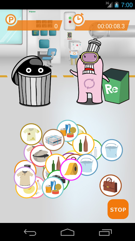 家庭ごみと資源ごみを手早く的確に分別するゲームです。