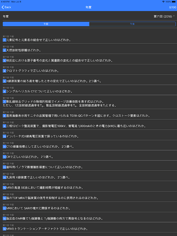 第64回から第72回までの診療放射線技師国家試験過去問が無料でできるアプリ