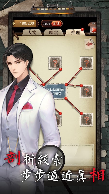 3、遊戲中遍佈著錯綜的人物關係,你需要合理的根據理清這些線索事件,逐個去進行分析