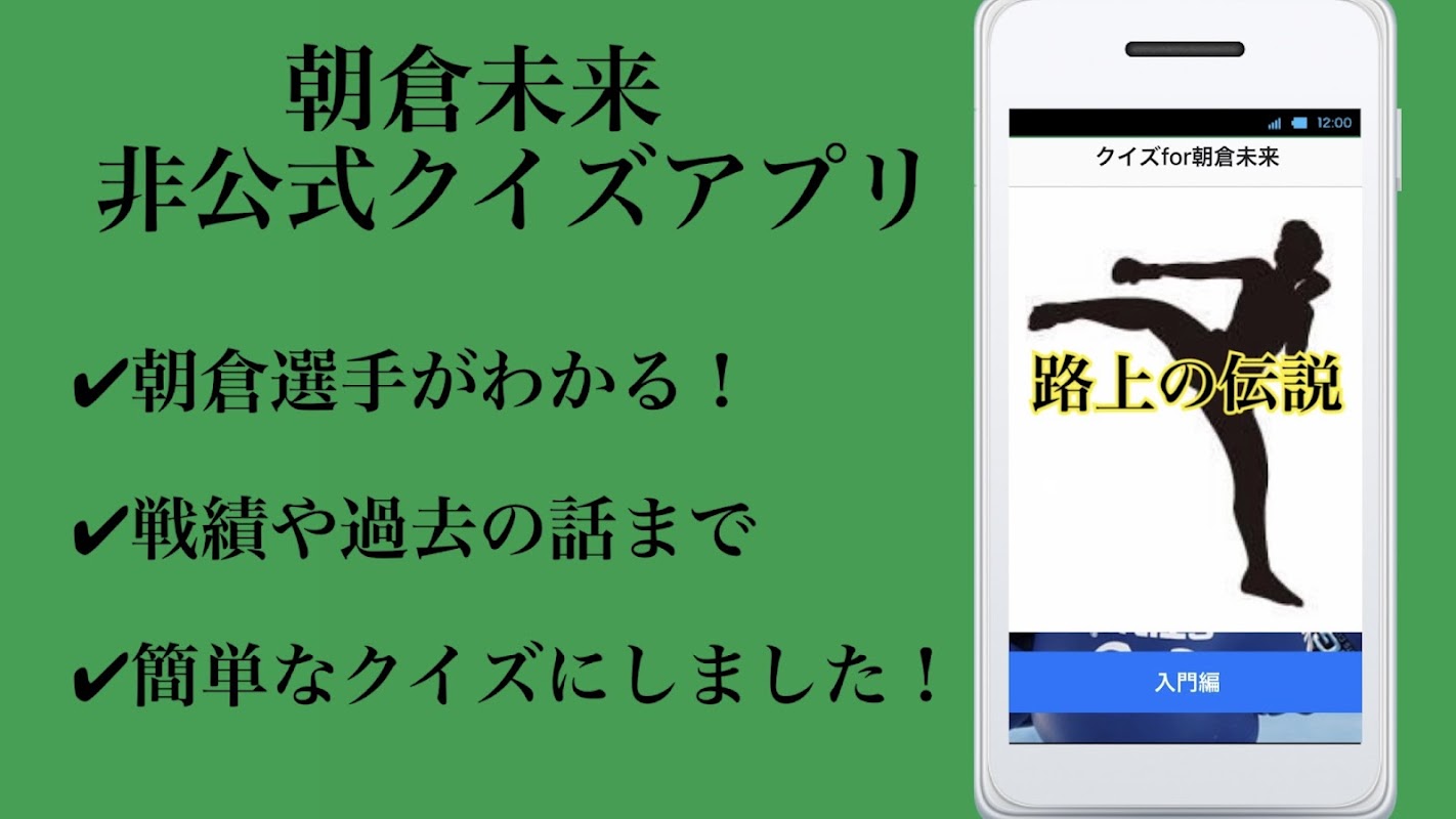 こちらのアプリは現在プロ総合格闘技選手の朝倉未来選手をクイズアプリにしたものです。