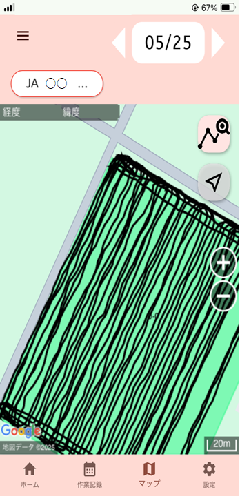 ・圃場内作業の開始と終了を判定し、農作業記録を自動生成できます。