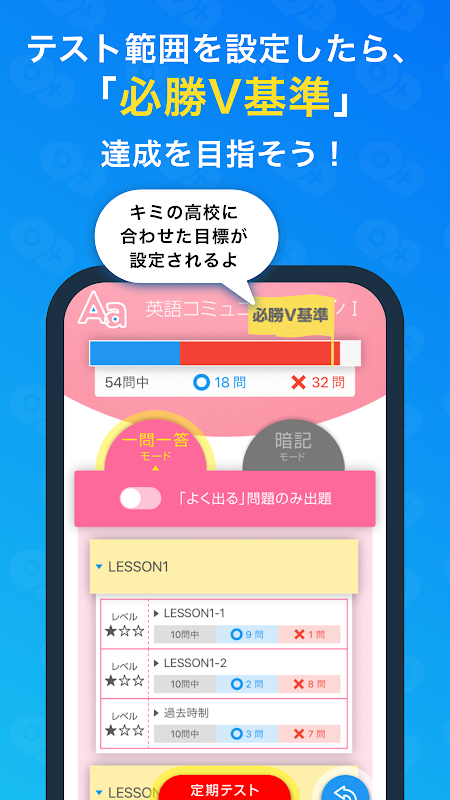 ・テスト範囲を設定するとキミの高校に合わせた目標をセット!
