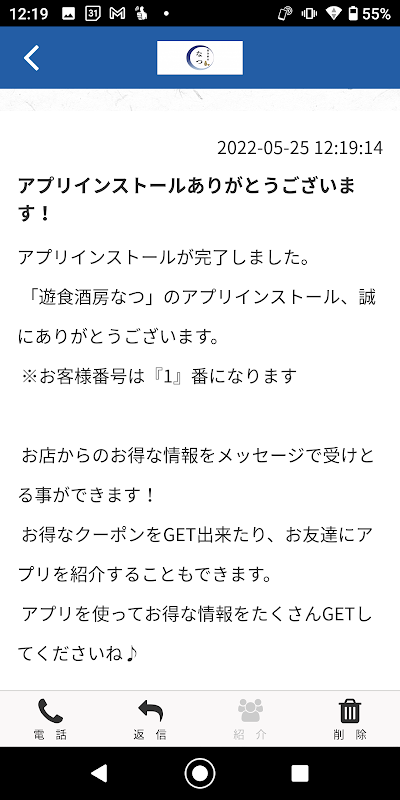 遊食酒房なつのアプリをSNSを通じてお友達に紹介する事ができます。