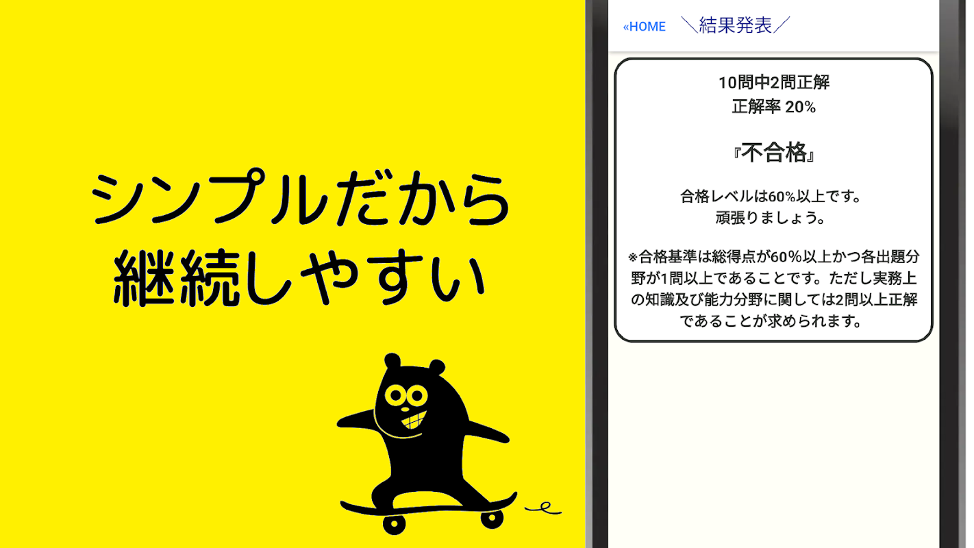 ・最後に試験の合格率に照らし合わせ、自分の到達度がわかります。